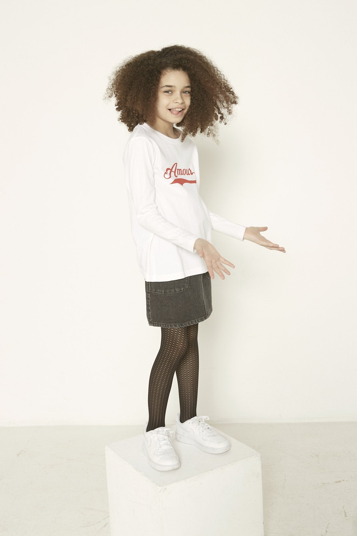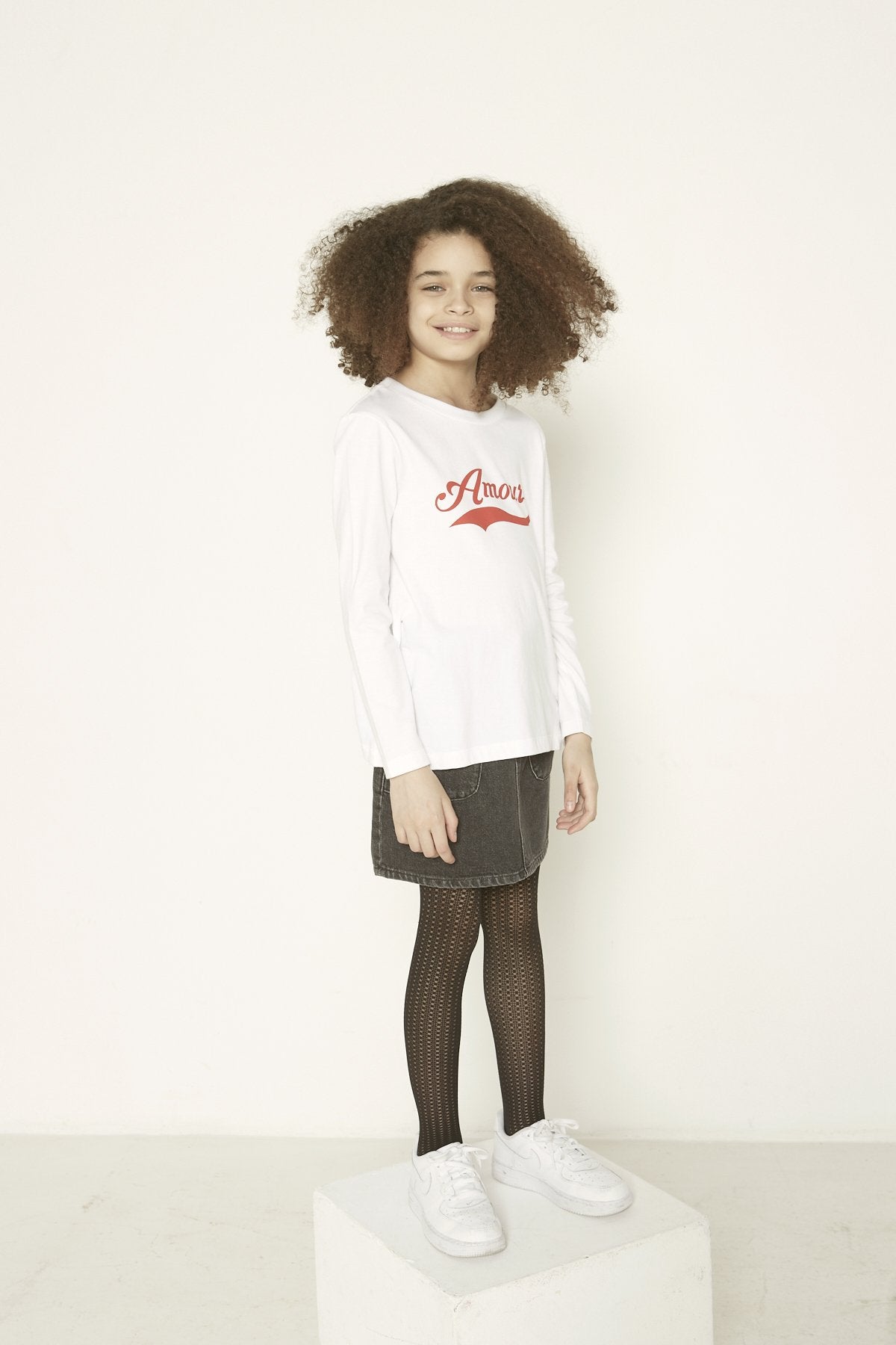 La mannequin porte une taille 8Y.